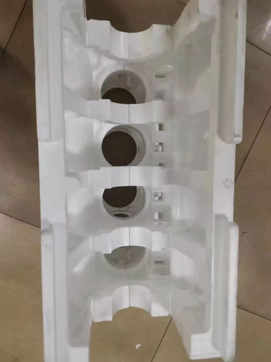 1、EPS(聚本乙烯)预发泡→2、发泡后打进模具内型成(泡沫)产品模型→3、泡上用防火材料做的涂料后烘干→4、泡过涂料的产品模型埋入砂箱内→5、用生铁熔化后的铁水进行浇注→6、冷却成型后取出产品→7、用抛丸机清理铸件上的涂料→8、完成铸件。